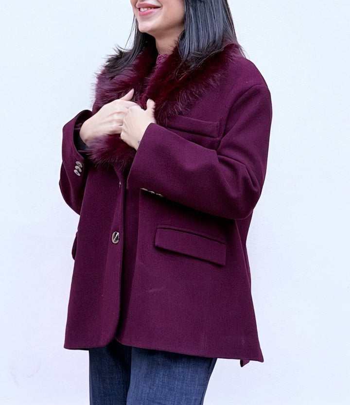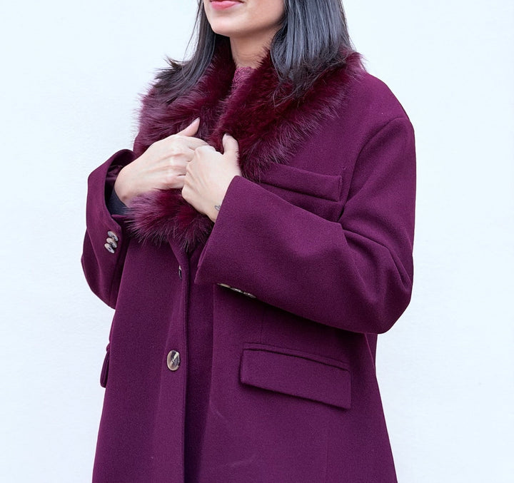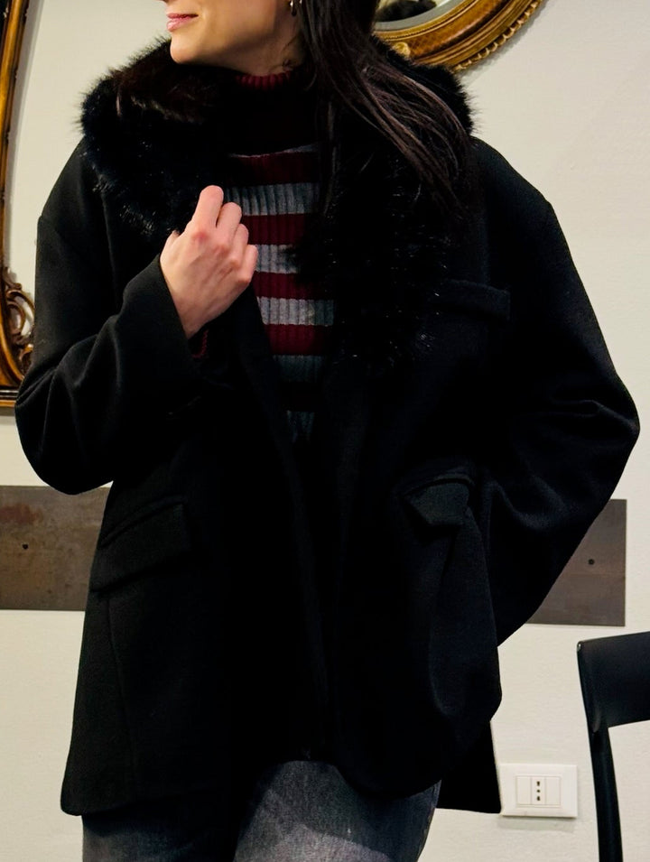 CAPPOTTINO/CABAN OVER CON COLLO ECOPELLICCIA