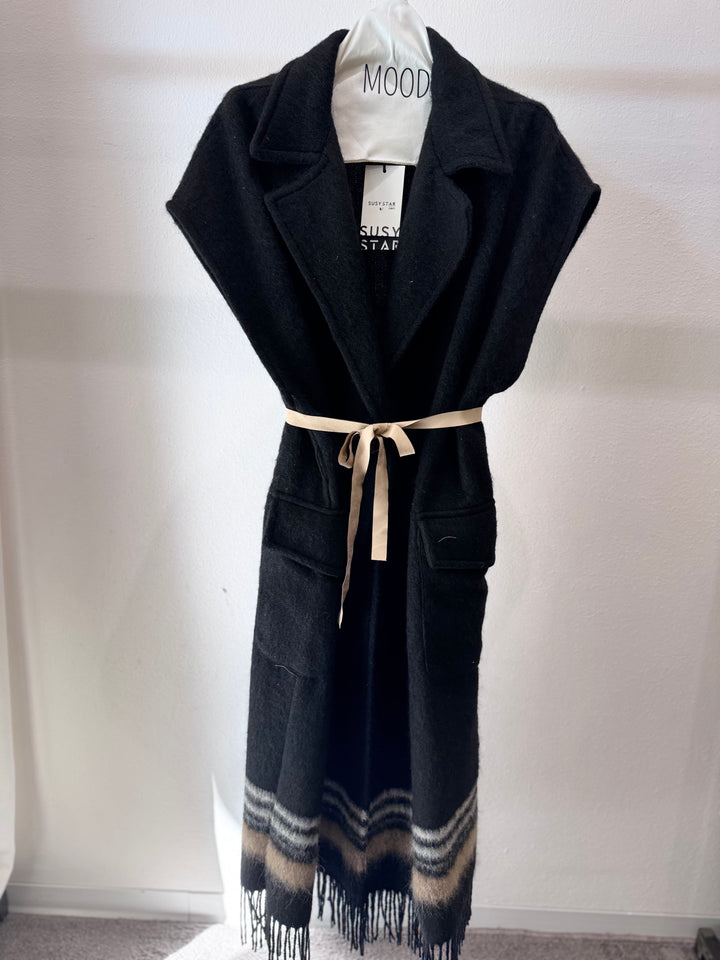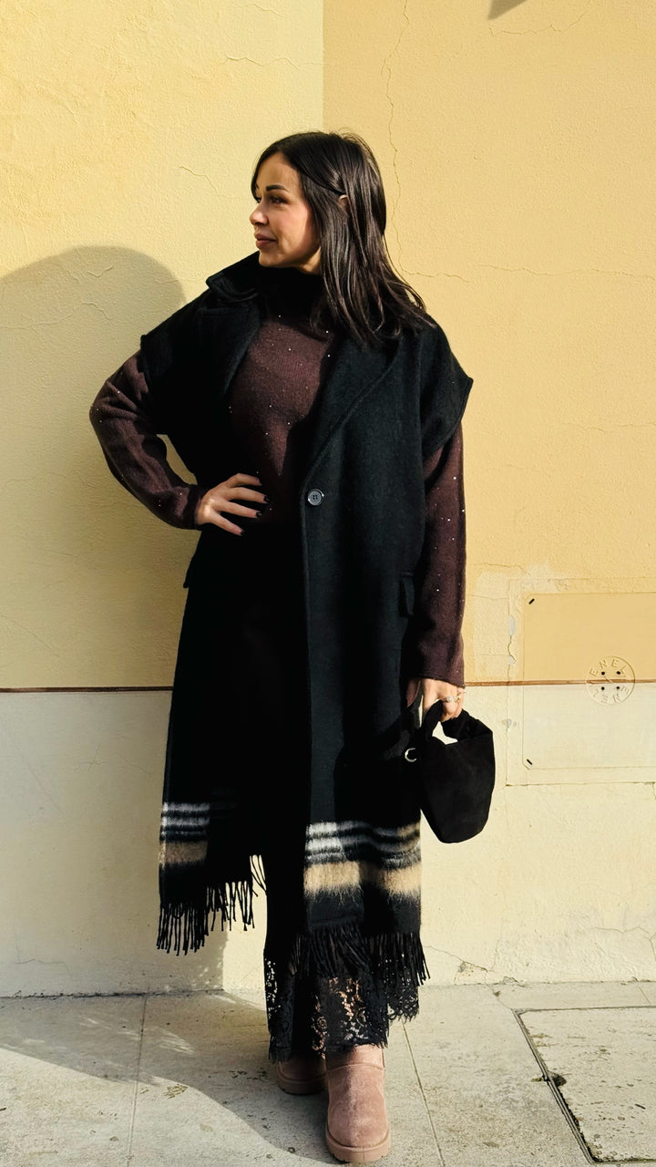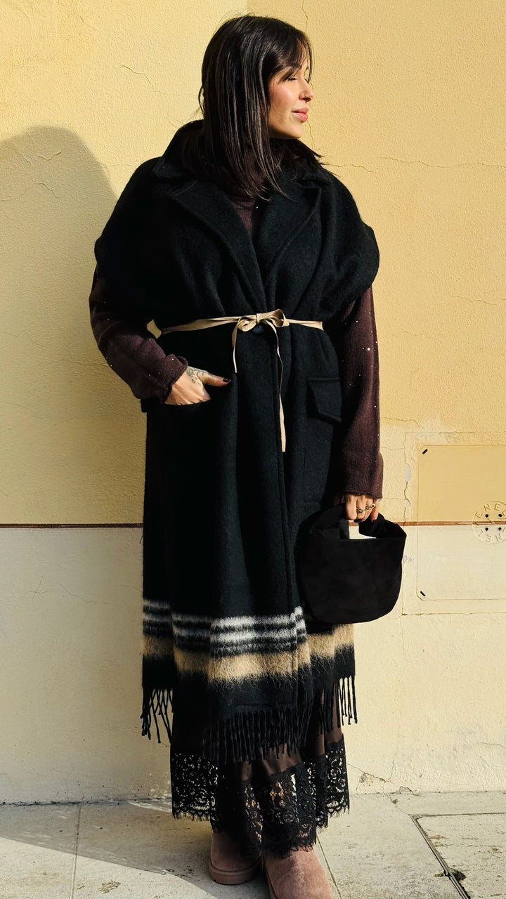 CAPPOTTO IN PANNO SMANICATO CON BANDA SUL FONDO