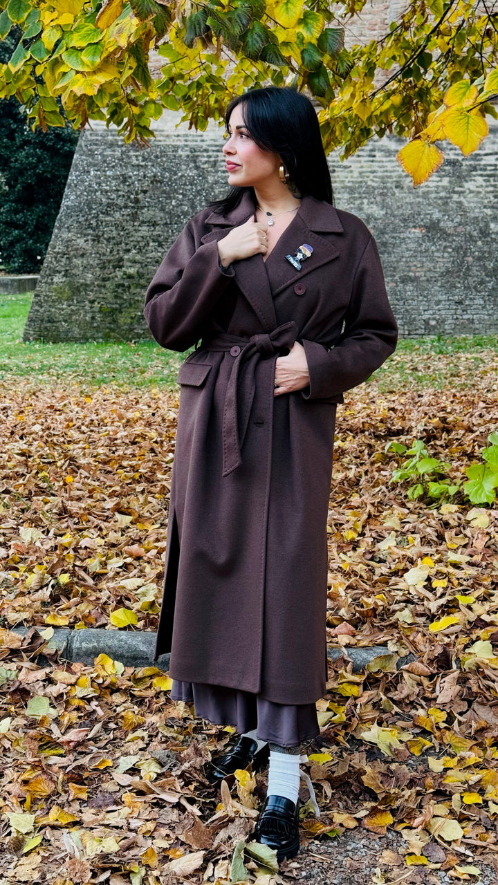 CAPPOTTO LUNGO CON CINTURA + SPILLA