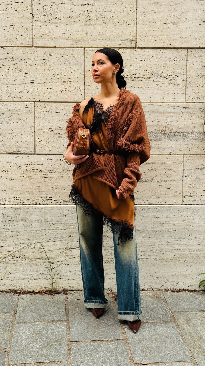 CARDIGAN CON FRANGE TINTA UNITA