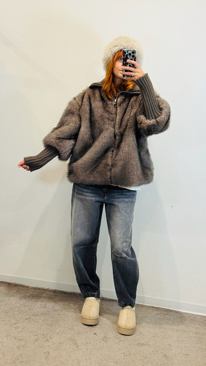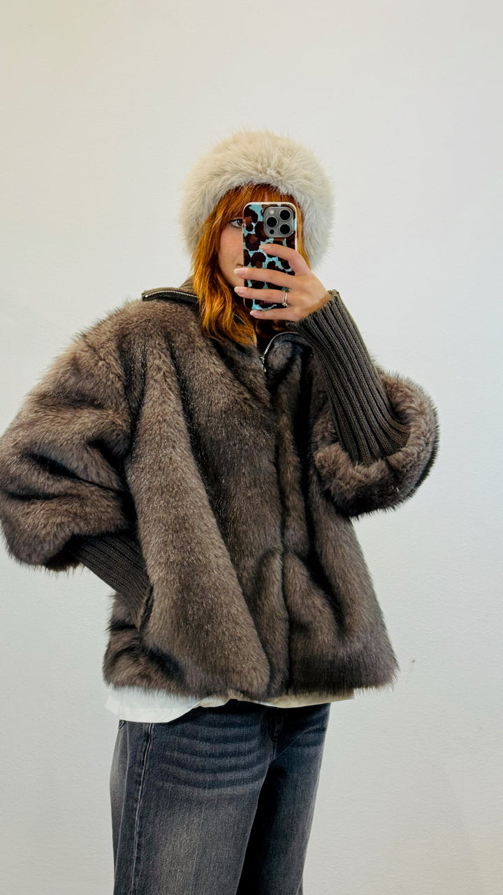 ECOPELLICCIA C/MANICOTTO E COLLO IN MAGLIA