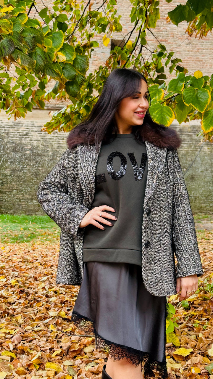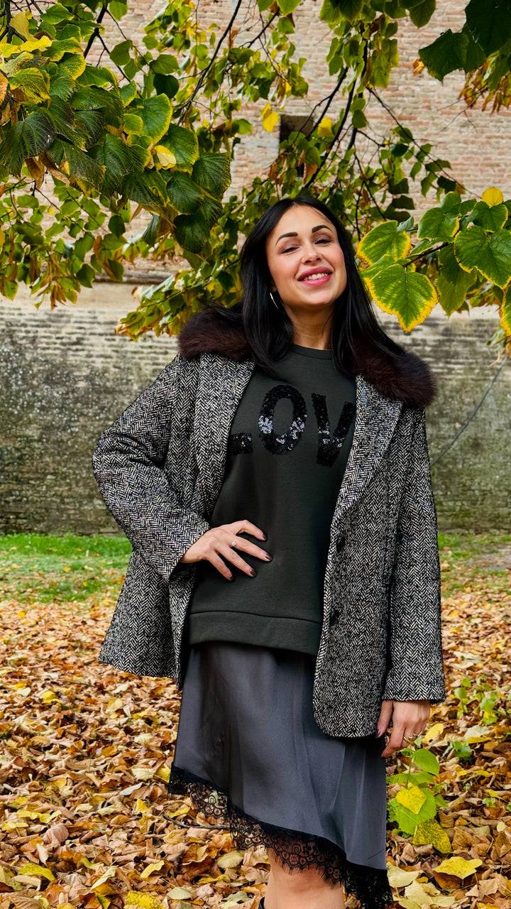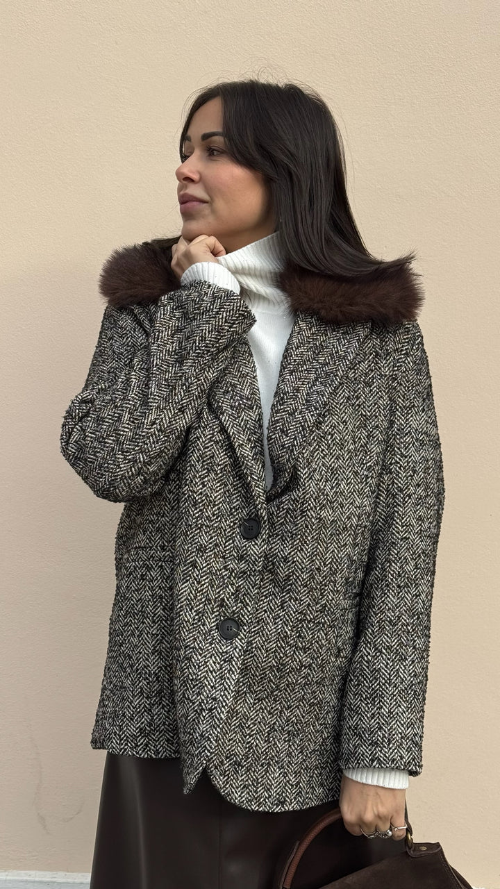 GIACCA/CABAN SPINATO C/COLLO ECOPELLICCIA