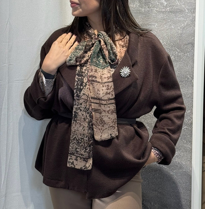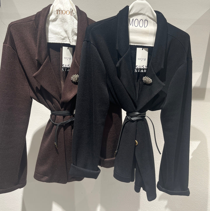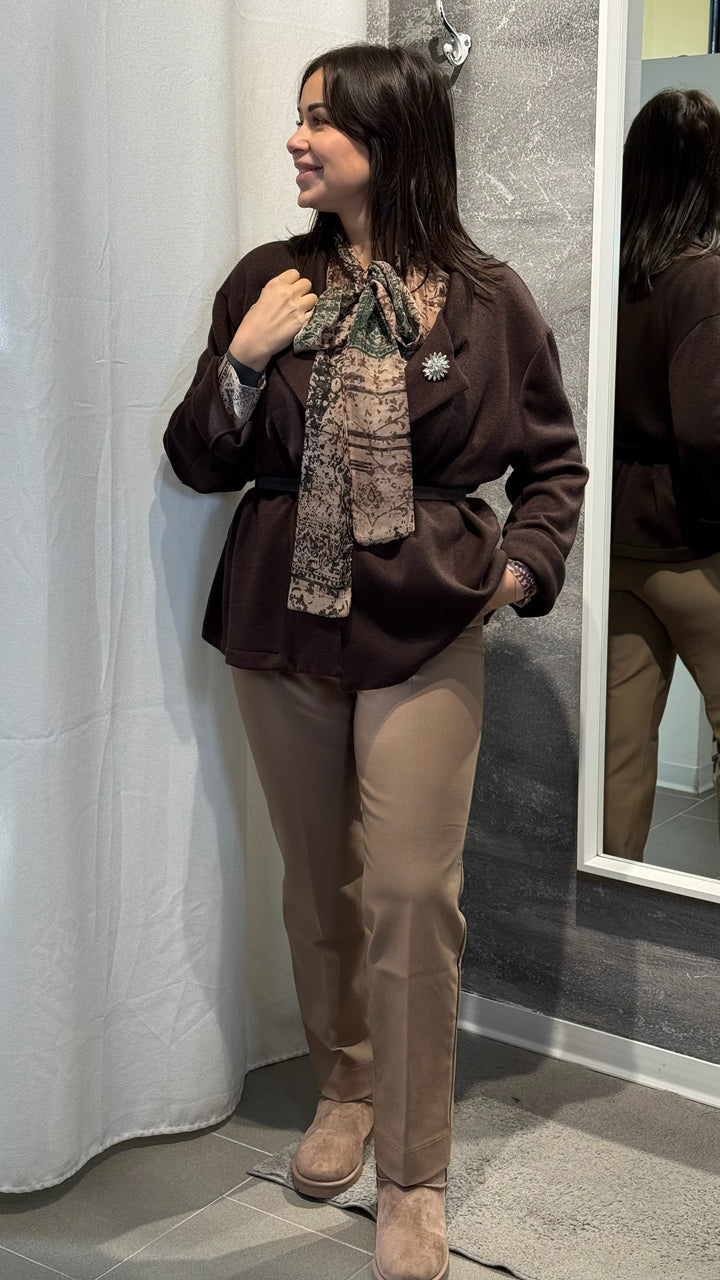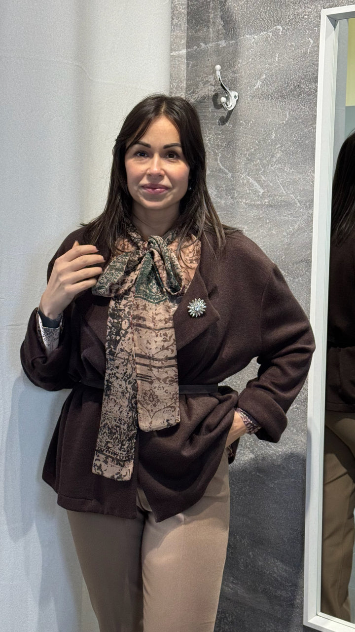 GIACCA IN MAGLIA CON CINTURA E SPILLA