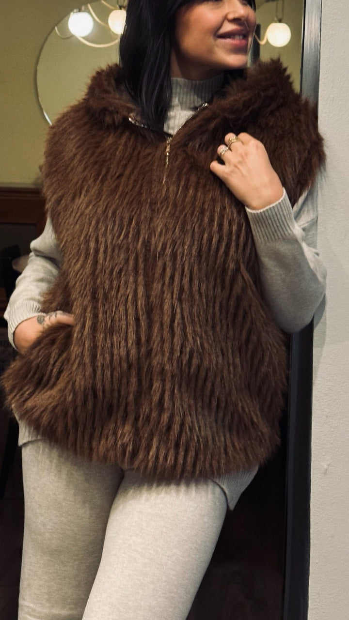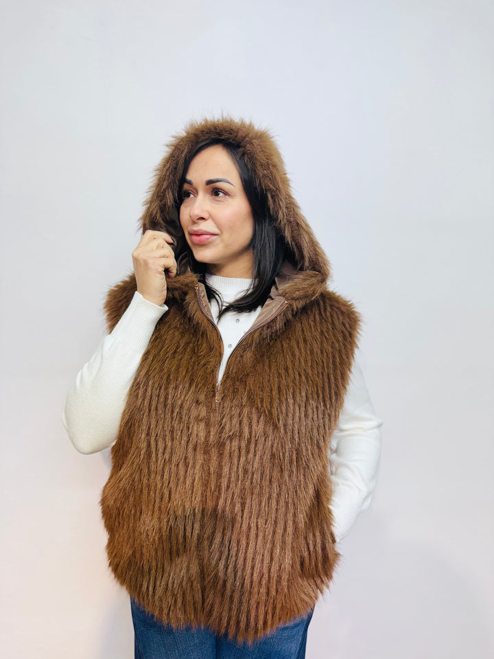 GILET IN ECOPELLICCIA C/ CAPPUCCIO