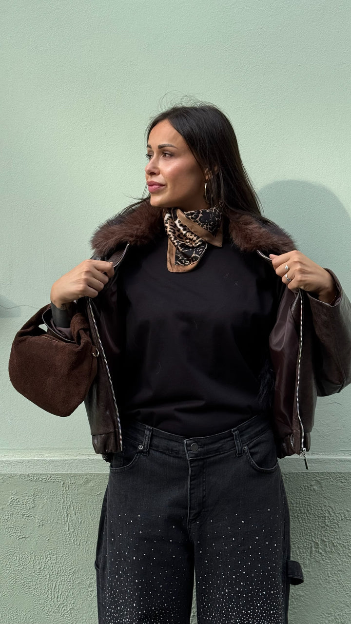 GIUBBINO ECOPELLE CON COLLO ECOPELLICCIA