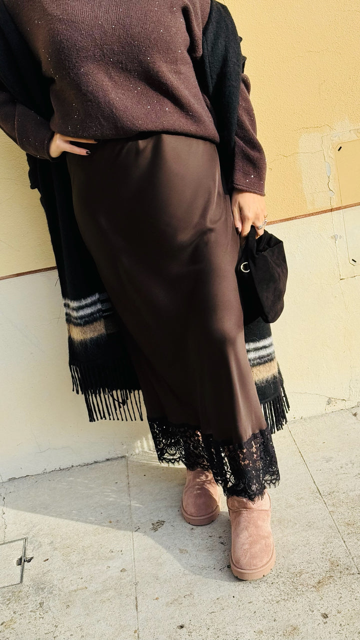 GONNA LONGUETTE IN RASO SATIN C/PIZZO