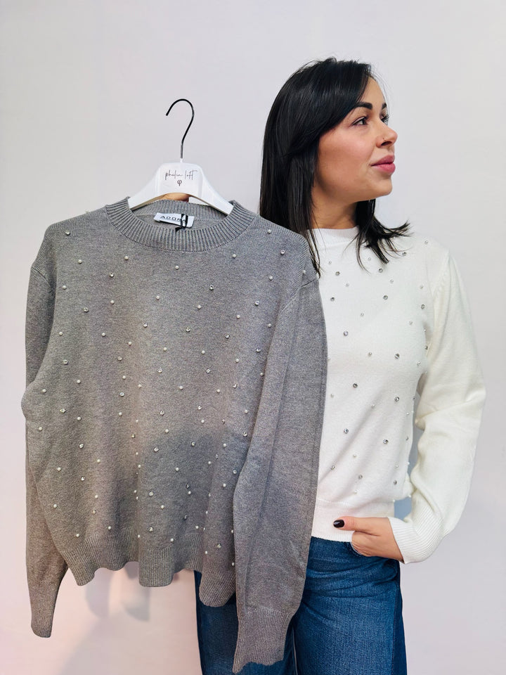 MAGLIA GIROCOLLO CON APPLICAZIONI PERLE