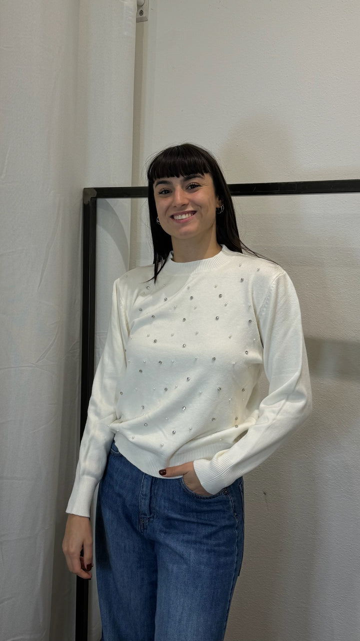 MAGLIA GIROCOLLO CON STRASS E PERLINE