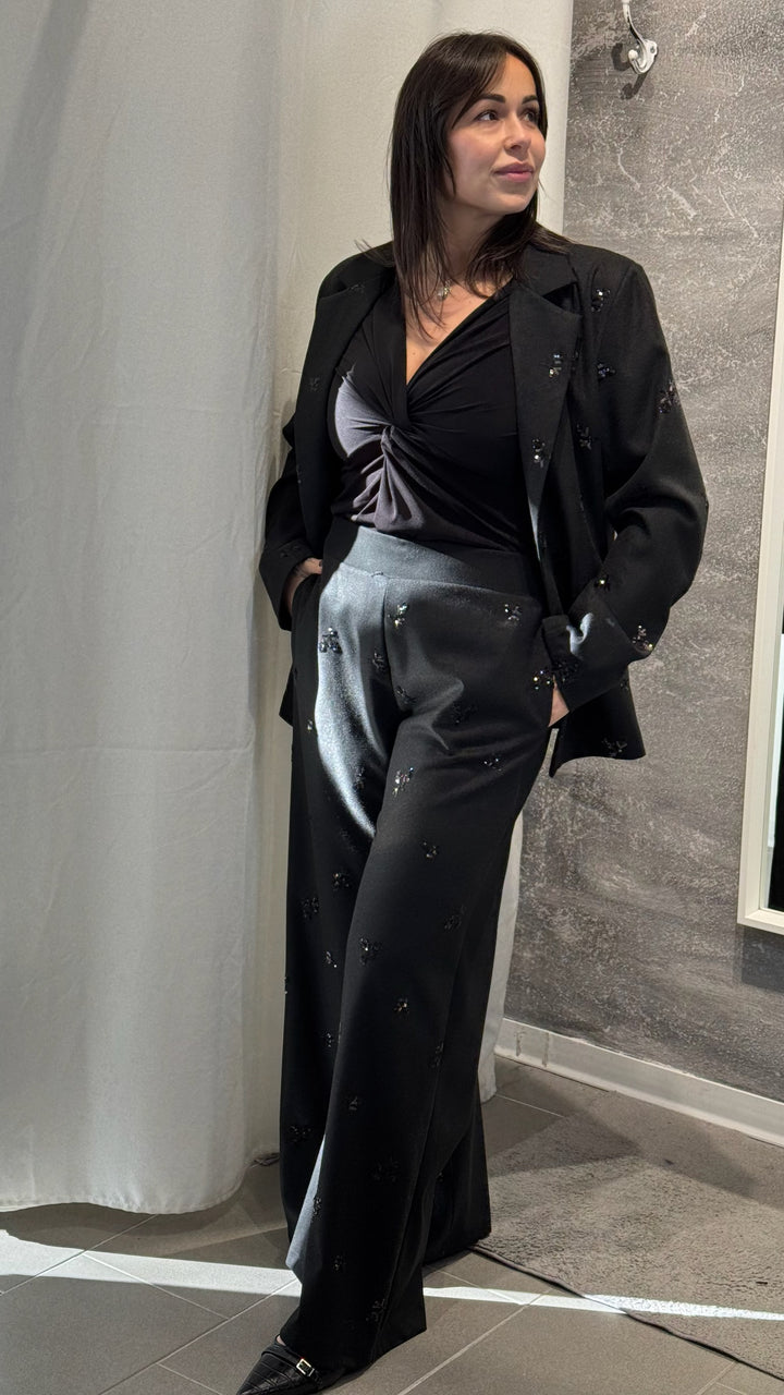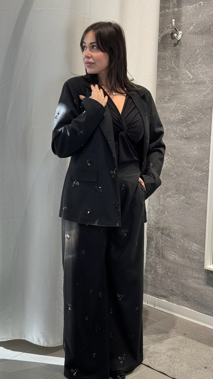 PANTALONE PALAZZO CON APPLICAZIONI PAILLETTES