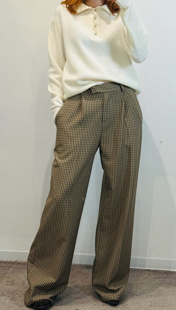 PANTALONE PALAZZO CON PIEGHE CHECK