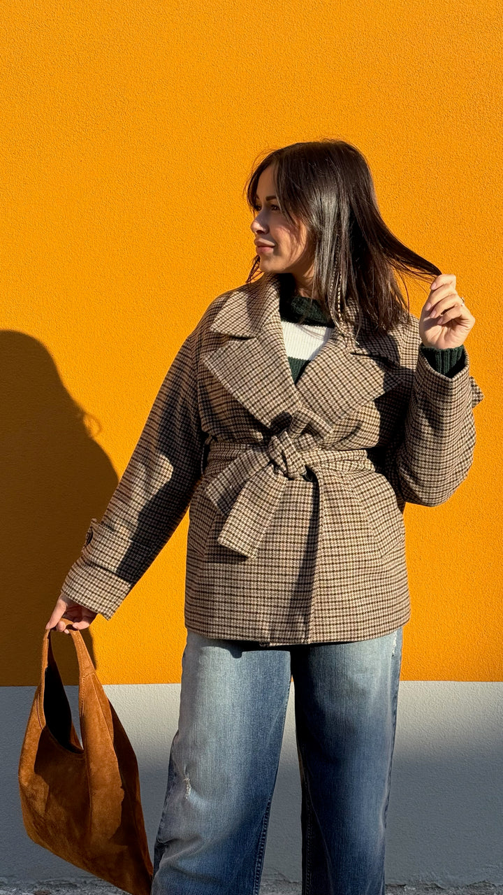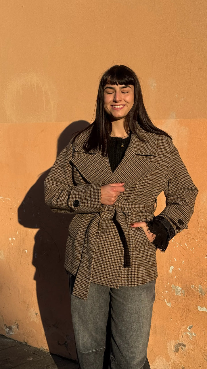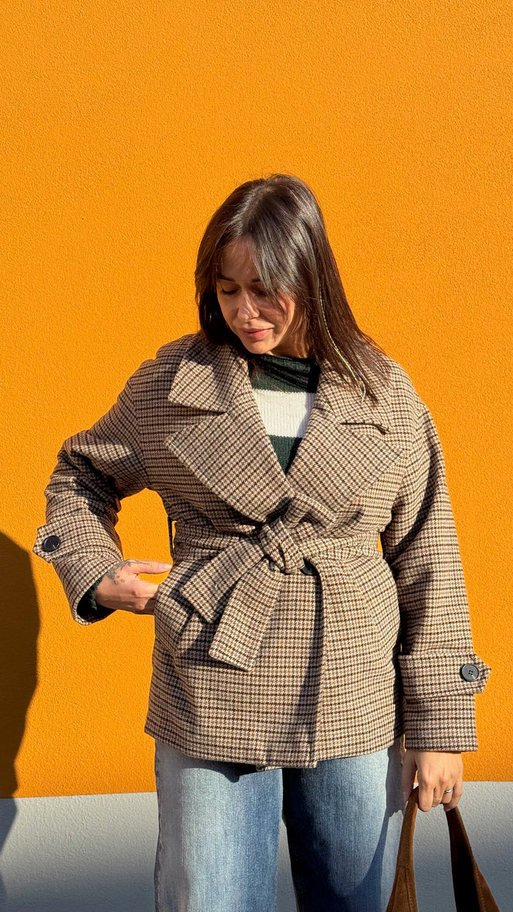 TRENCH CORTO PIED DE POULE